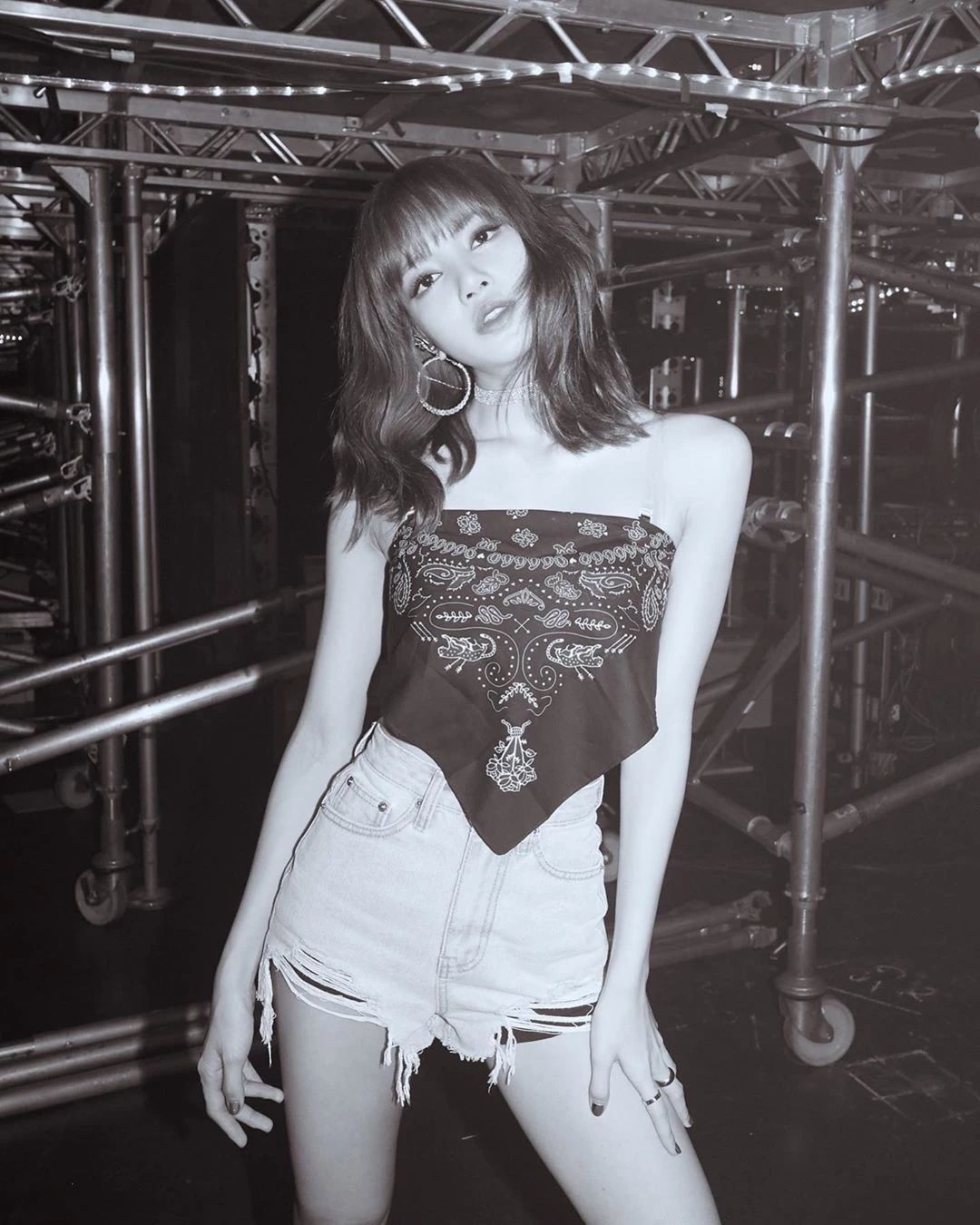 LISA甚至直接用一条丝巾玩出了一字肩新花样,但新穿法越多,就越要考虑里面究竟要怎么穿内衣才能做到既不影响Look的美感,还不会尴尬走光。