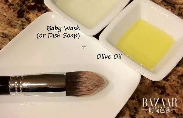 step1如果家中没有专业的洗刷水,可以用婴儿洗发水加点橄榄油自制。因为很多刷子是动物毛材质,所以清洁剂一定不要含有酒精。