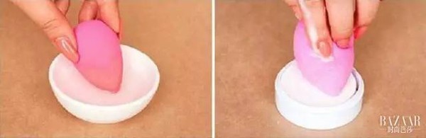 step3 用手掌重复挤压海绵,用力把其中的残留化妆品彻底清理出来。