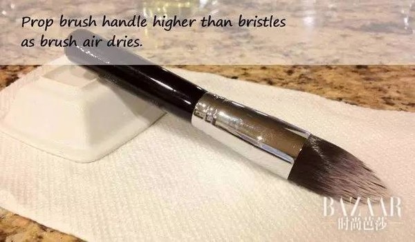 step4 洗干净后,将刷毛的一端向下搁置,放在透风好的地方自然风干,不要用吹风机热烘,虽然干得快,但会对刷毛造成很大伤害。