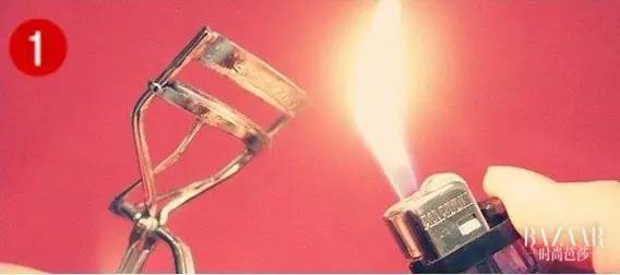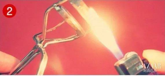 step2 用打火机的外焰微微烘烤睫毛夹头。