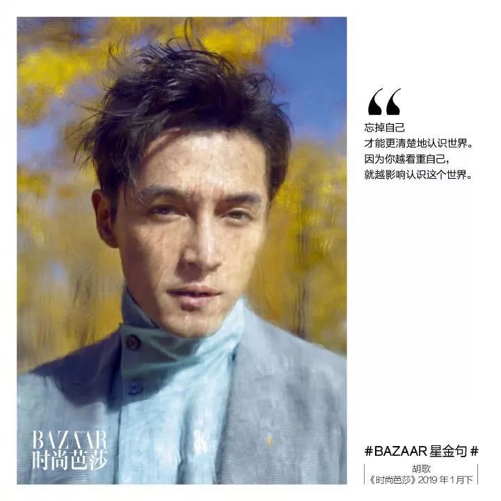 也是那几年,胡歌主演的《猎场》在国内热播,正是事业红火时,他却选择了暂别娱乐圈,出国深造。 《时尚芭莎》2019年1月号下 《时尚芭莎》2022年2月刊中,采访者形容他“既有身处城市烟火中的自在,又仿佛与现实保持一定的距离”。或许是因为天性,或许是因为经历,胡歌未曾缺乏过从头再来的勇气。无论是在巅峰期还是低谷期,他好像都永远天真、永远通透,即使拥有成就也从不骄傲自满,永远敢于实践自己心中认为有价值的事情。他的每一次转折,都来得有点“意料之外,情理之中”,因为他是胡歌。2023年,胡歌四十周岁,这是他入行的二十年整,也是他人生崭新的阶段。他像是好友和我们分享喜事,我们也有说不完的祝福,愿他幸福美满,走向一个又一个历程,享受人生的每一个阶段。《时尚芭莎》2016年3月号下*部分内容节选自 《时尚芭莎》2019年1月号下《时尚芭莎》2022年2月号