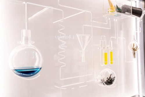 illombo PRO店内的色彩陈列区放置着600种不同的色彩,每一种都是经过研发工程师一次又一次的实验、专门调配制成。600种色彩带来视觉享受的同时,体现了illombo意带给顾客生活中的丰富多彩的愿望。