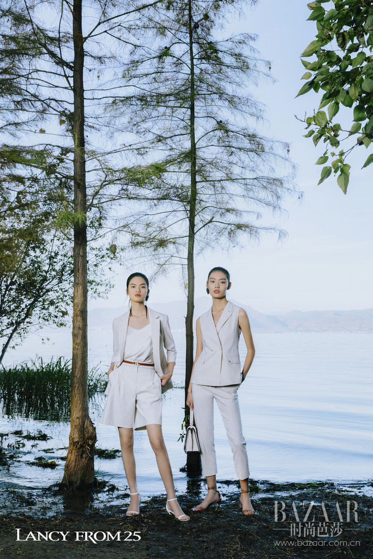 系列延续了LANCY FROM25一贯的优质面料,金丝纱线、长绒棉、亚麻等轻质舒适的材质,带来高级细腻触感,呈现出时装本真一面,同时也可满足日常通勤与户外出行的需求。