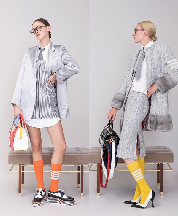 这运动袜可不是设计感裙子的绝缘体,搭配起来可是有模有样的。照这个运动袜热度的趋势下去,传统黑丝袜可以下班休息一下了。