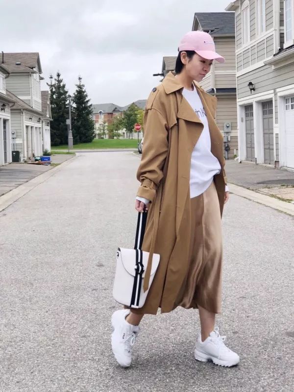 上榜理由:「棕色风衣秋意浓,丝绒半裙添雅意」