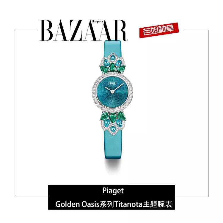 祖母绿与帕拉伊巴碧玺带来与众不同的蓝色搭配,簇拥着一块儿精雕透明珐琅彩绘的表盘,精细的花纹与通透度十足的色彩结合,将珠宝的华美和工艺的精美演绎得淋漓尽致。