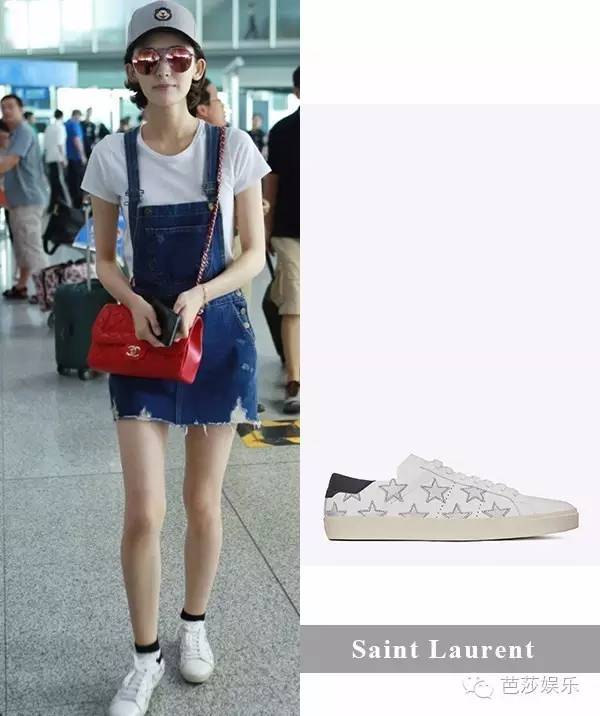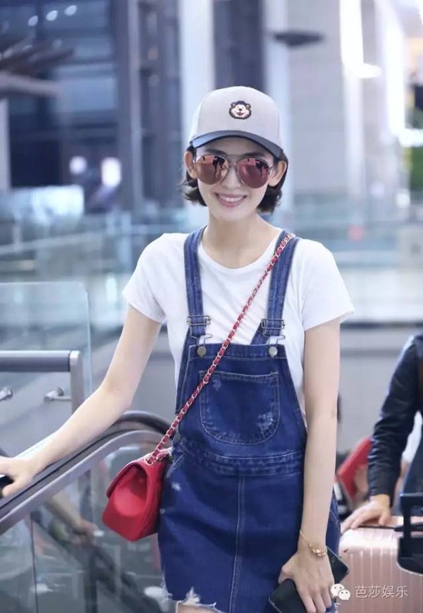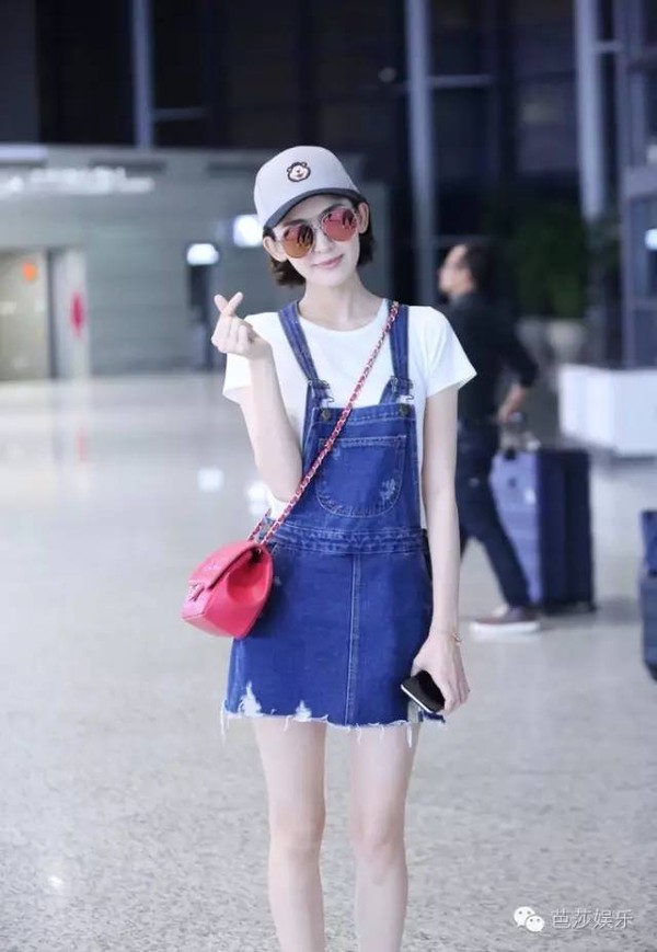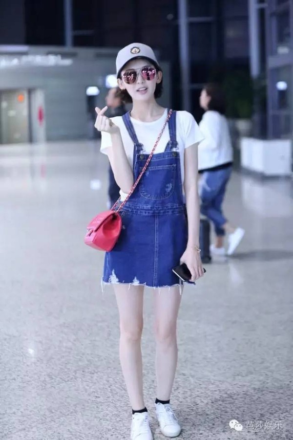 每次在机场都能时髦到起飞的娜扎,这次用白T和背带裙又小清新了一把~