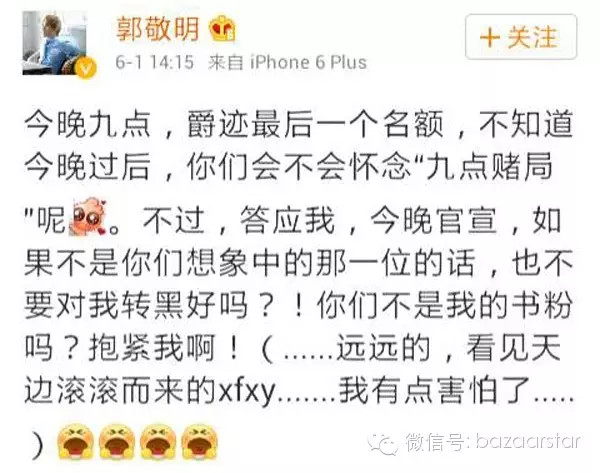 而且在当晚公布之前,郭导还用心地专程发了一条微博让大家猜压轴的究竟是谁。
