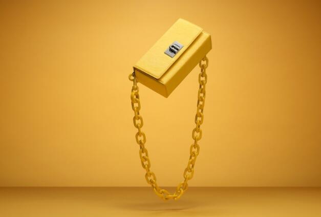 坚固且具有弹性的BLOOM BAG可折叠,包身是由纸制成的,柔软、轻盈,通风性强;肩带链条由可回收的亚克力材质制成。