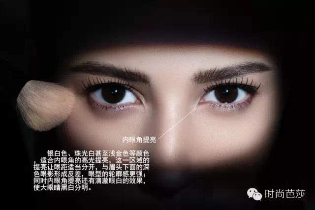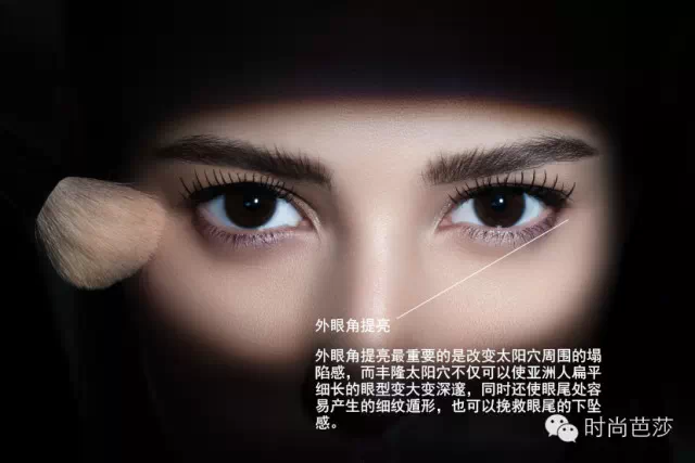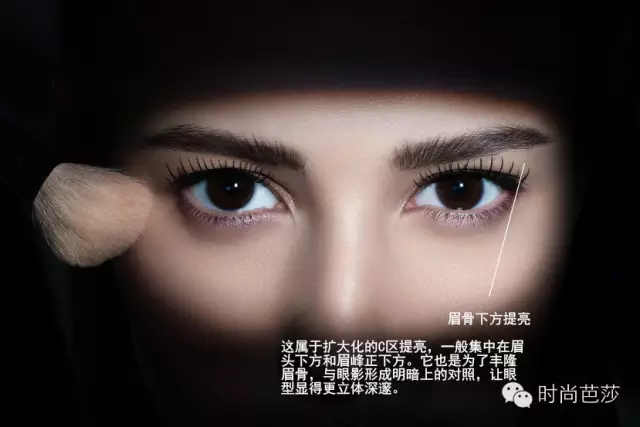 "优秀的彩妆师好比要创作一个完美的人脸雕塑,就像雕塑大师会在创作中给脸部加上黏土或者去掉黏土一样,运用修容和高光就能创造出凸凹分明的视觉效果,眼尾C区的高光令颧骨周围和太阳穴上的肌肉更饱满,可以反衬出眼眶的深邃和腮下的清俊轮廓。而内眼头小C区的高光,使得眼头轮廓更鲜明,而且去除了使用深色眼影时特有的压抑感"”——美国的修容和彩妆大师Donna Mee