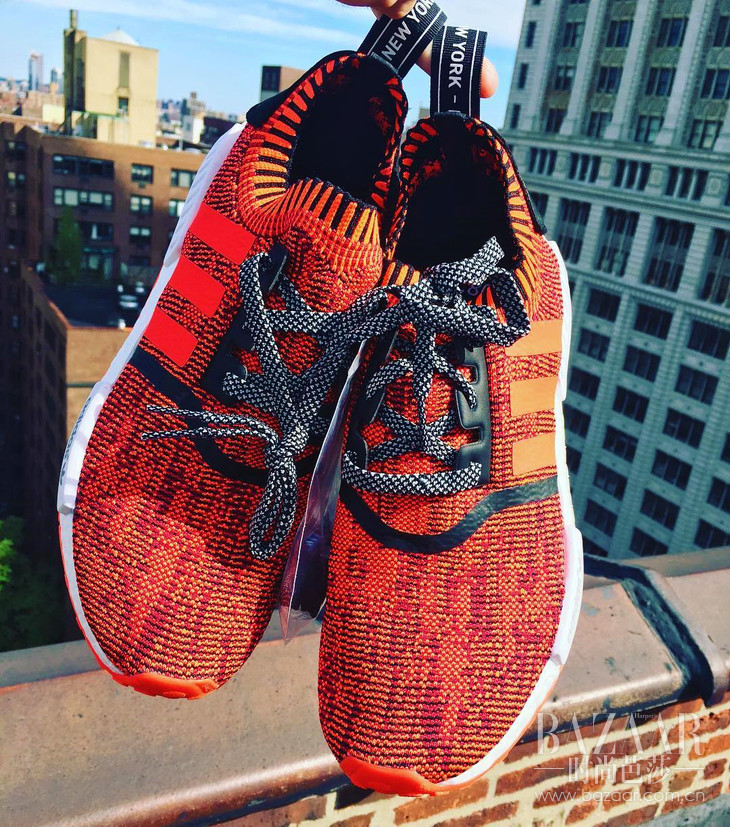 虽然Karlie也穿了一双白色的NMD,旁边的蓝色装饰是点睛之处。