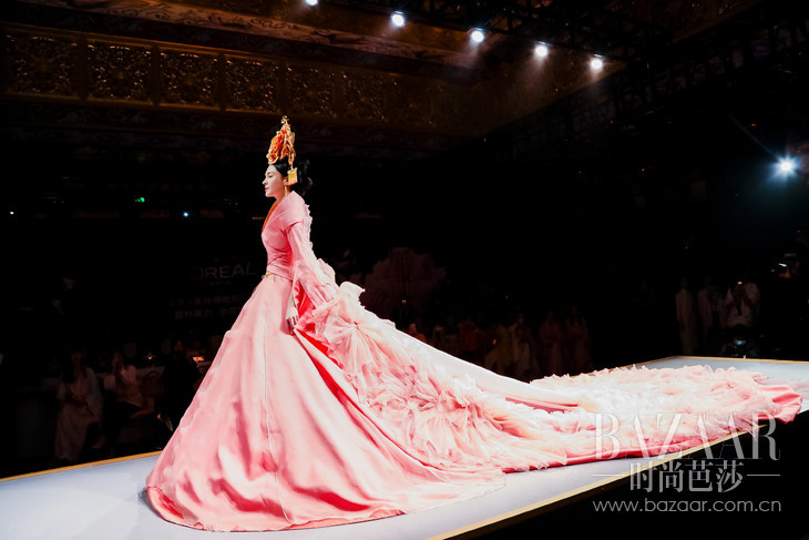 当晚,在巴黎欧莱雅护肤彩妆代言人宋佳与知名国风高定设计师郭培的共同演绎下,一场融合古典与当代艺术的法式至奢视觉盛宴盛大启幕。由洛阳国家歌舞团原班人马带来的舞蹈表演,飘逸的现代舞姿与灵动的粉妍裙摆间散发着高贵与奢华,尽显东方文化底蕴。此次,郭培以欧莱雅金致臻颜牡丹粉妍系列为灵感,特别定制了一款融合中法元素的华服,并特别邀请演员张榕容亲身演绎,尽显法秀工艺与牡丹之美。华美之服与肌肤之悦一脉相承,在宋佳的证言与众嘉宾的瞩目下,欧莱雅金致臻颜牡丹粉妍系列隆重上市,宋佳也在现场分享她无惧时光的驻龄奥秘,与大家一同探秘金致愉悦的护肤体验。