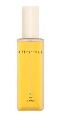 发油及护发精华(Hair Oil/Hair Essence)一般用于干枯、损伤的发质,在滋养干枯发质、修复发丝因染烫造成的化学损伤的同时,抚平秀发毛糙,增加头发的柔顺度及光泽度。全新effortless 轻重系列无硅护发精油的油质精华部分为Deep Repair Essense-5™ / DRE-5™ 深层修护精粹,由摩洛哥坚果油、仙桃仙人掌籽油、玫瑰果油、牛油果油、角鲨烷5种珍稀的天然滋养油脂构成。品牌精心选用天然油脂以代替硅油,在滋养秀发的同时拒绝粘腻,对于头发的滋养深度是普通硅油或油脂成分的3倍,起到抚平头发毛躁、滋养损伤秀发、提升发丝光泽度的显著功效。而水质精华部分为Hydrating Protein Complex-6™ / HPC-6™ 锁水蛋白精粹,是由含有玻尿酸钠、锁水磁石的保湿成分及角蛋白、蚕丝蛋白、弹性蛋白、硬蛋白4种强韧蛋白质成分构成。玻尿酸钠能够吸收本身质量1000倍的水分,配合锁水磁石,一补一锁,长效保湿;而与发丝天然亲和的4种蛋白质成分则能够起到4重修护效果,在帮助头发保湿、强韧的同时,让头发更蓬松、更丰盈。