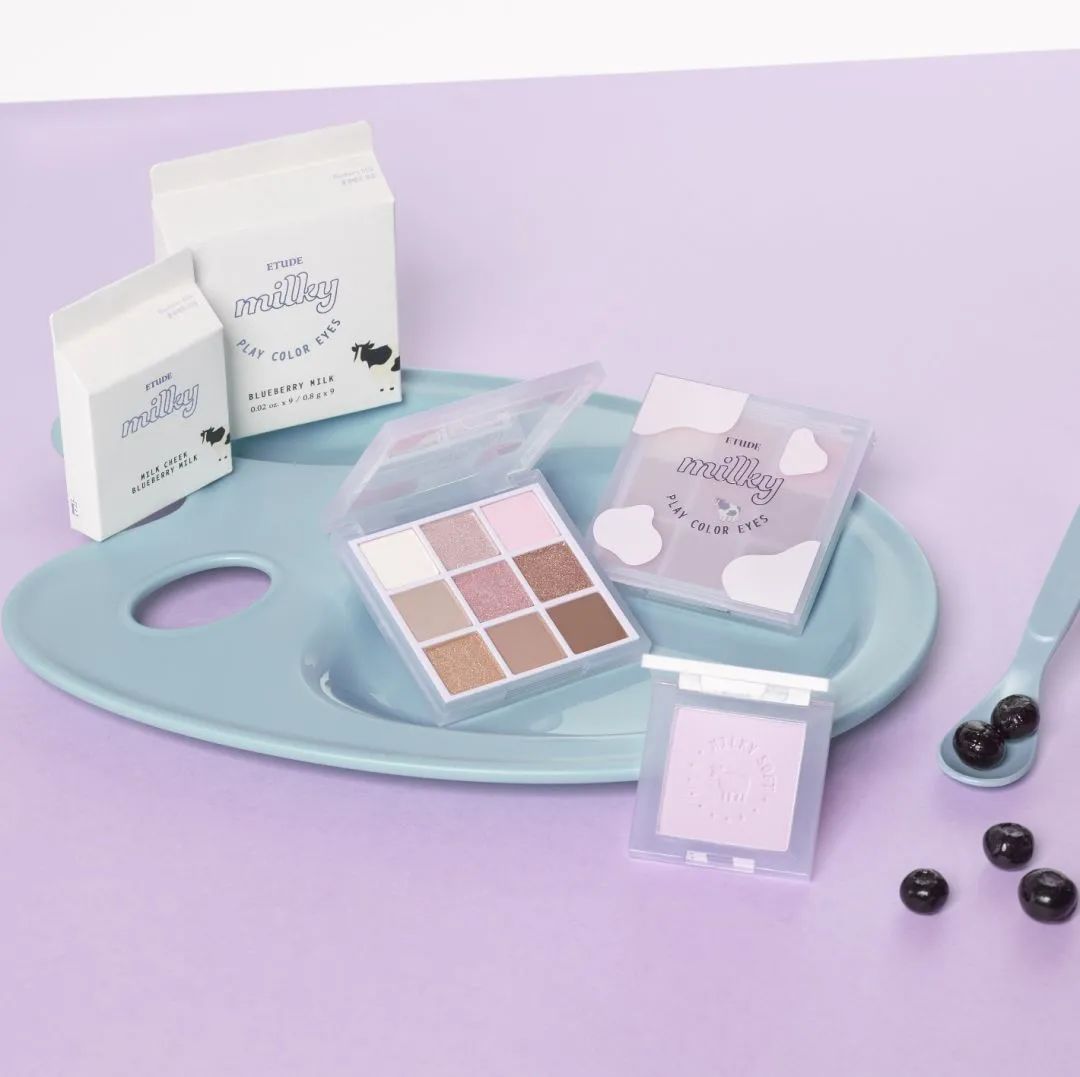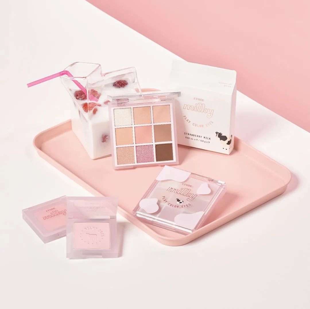 这次的牛奶限量版系列,包含了牛奶美肌隔离乳、3款全新“牛奶盘”玩转色彩多色眼影盘#草莓牛奶、#香蕉牛奶、#蓝莓牛奶,以及3款同系列的柔嫩腮红。