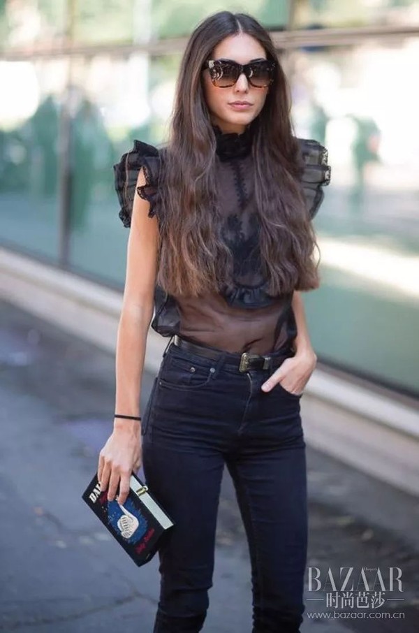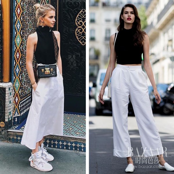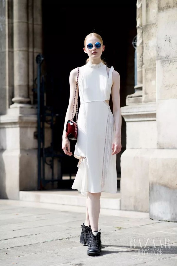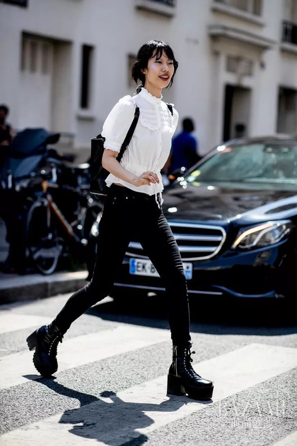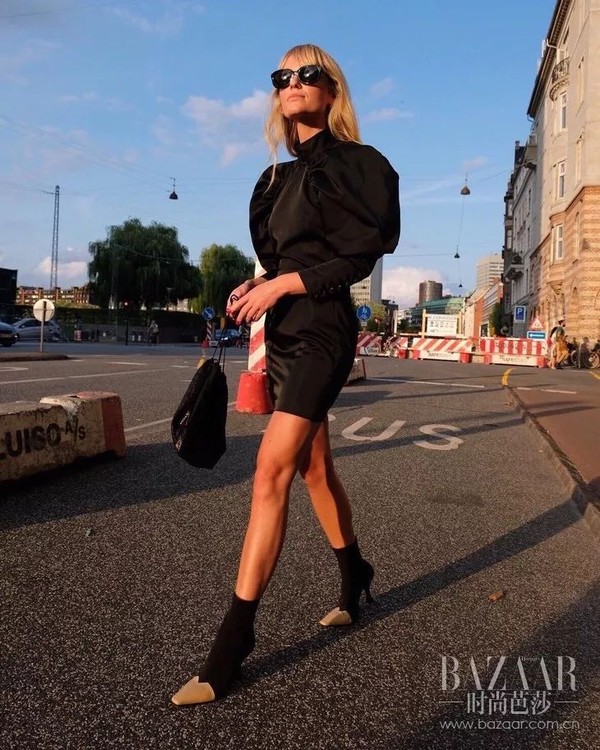 要是觉得复古造型会看起来太Drama,可以先从简单的黑白色穿起,有了设计感的加持,打眼又怎么搭配都不会出错。