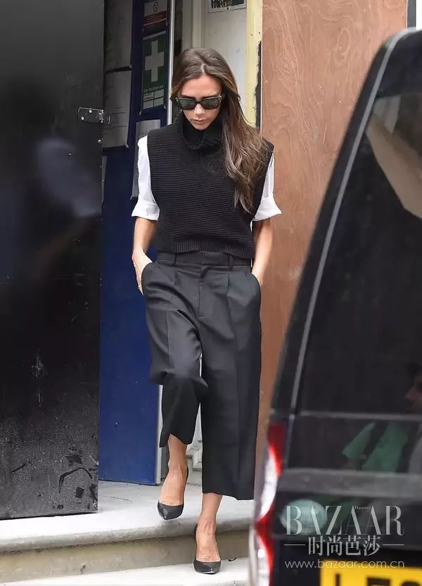 许多人担心自己的身材Hold不住高领,但其实,基本款的黑色紧身高领上衣就能在牢牢箍紧腰身的同时,借助脖子处的收缩感在视觉上将腰围缩小,已然是真正的显瘦担当。