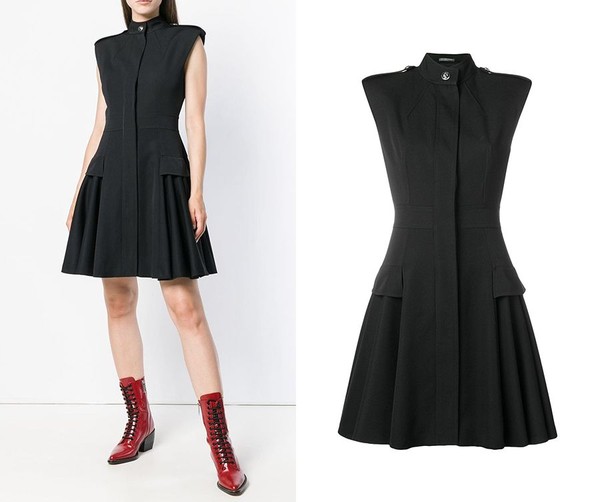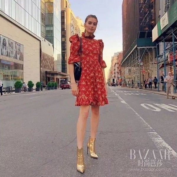 如果你是个小骨架的小个子,就可以选择那些带着飞袖、泡泡袖、气球袖的高领连衣裙,连同高领设计在肩膀上方撑起一个廓形,使气场无限Up,还很显高。