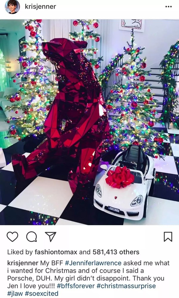 最近她问Kris圣诞节想收什么礼物? Kris说“当然是保时捷”