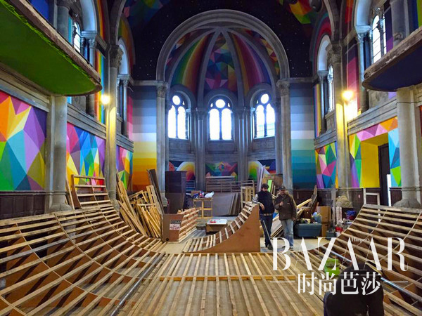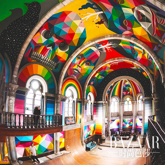 【时尚芭莎网讯】刘晶 今年年初,西班牙利亚内拉的一座古老的教堂得到应允被改造成一个滑板公园,并取名为Kaos Temple。目前改造已经进行到第二阶段。艺术家巧用明亮的色彩和等距图形让这座老教堂重新焕发了生机…… 改造前VS改造后...