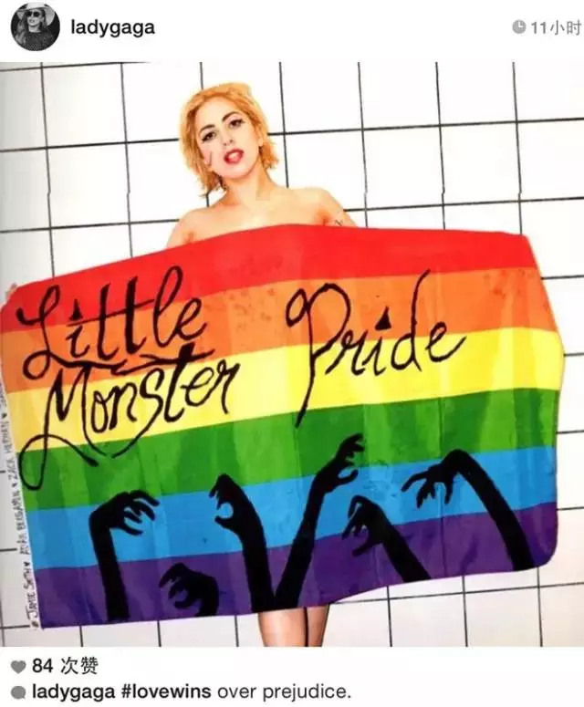 金色短发的Lady Gaga也发了ins,高呼“Lovewins over prejudice!”