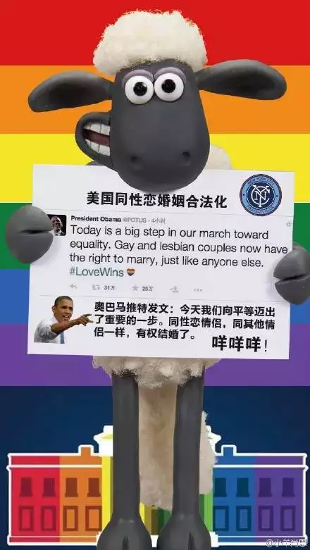 就连奥巴马都在推特发话了!从此真的真的,真爱无敌了!(感谢小羊肖恩的友情出镜)