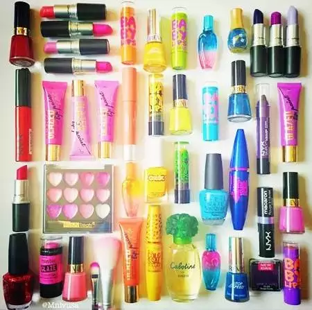 彩妆控也是拼了!将每一件彩妆都翻出来,红橙黄绿青蓝紫,它们绝对能完美融合进彩虹色里。