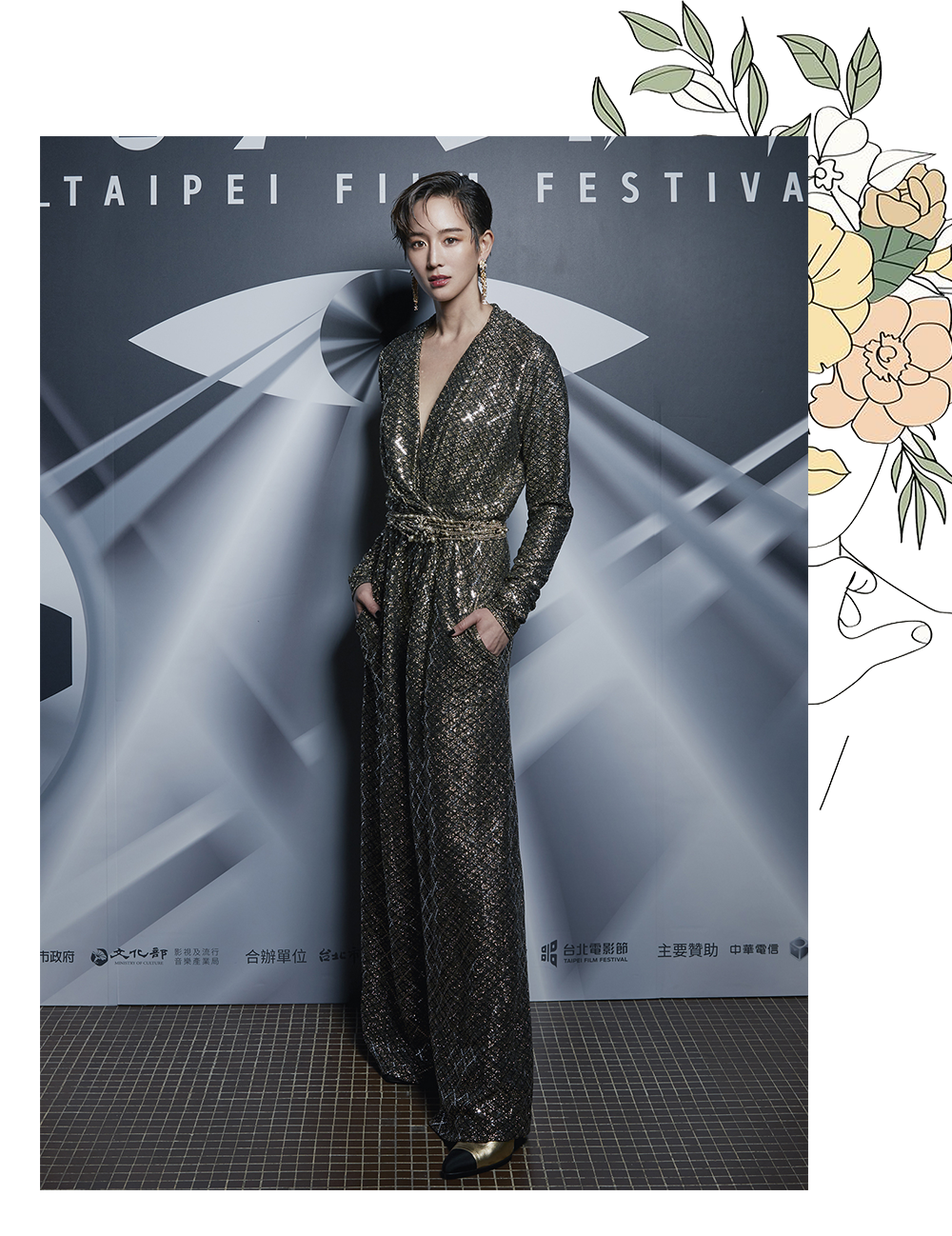 这件看着就不简单的连体裤,来自不久前刚发布的CHANEL手工坊系列,重工制作相当精良,亮片缝制成标志性的菱格纹。张钧甯用短发和一簇花蕊般的耳饰就穿出了和模特完全不同的风格,原本复古的法式风情在张钧甯身上变成了更硬朗的现代美。