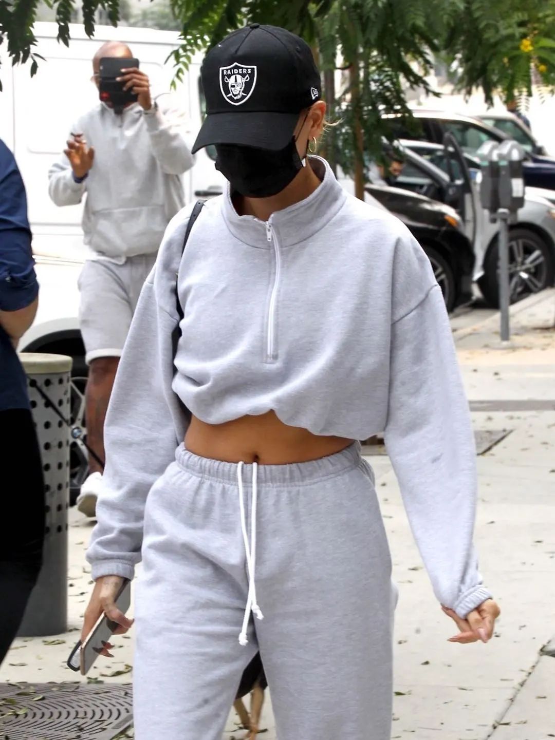 一向走运动挂的Hailey,这次和友人Justine Skye前去西好莱坞吃午餐的时候,依旧是以一套舒适休闲的卫衣套装现身,休闲又时髦。