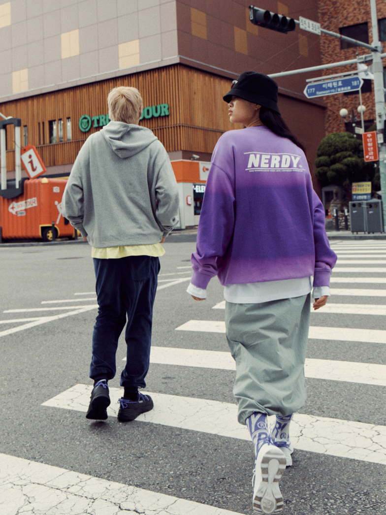 说真的,不论是印花还是撞色,这些元素都是设计师们赋予时尚的符号,Nerdy显然也深谙此道, 2020秋冬系列的渐变卫衣就很有未来感,叠加撞色,想不引人注意都难。