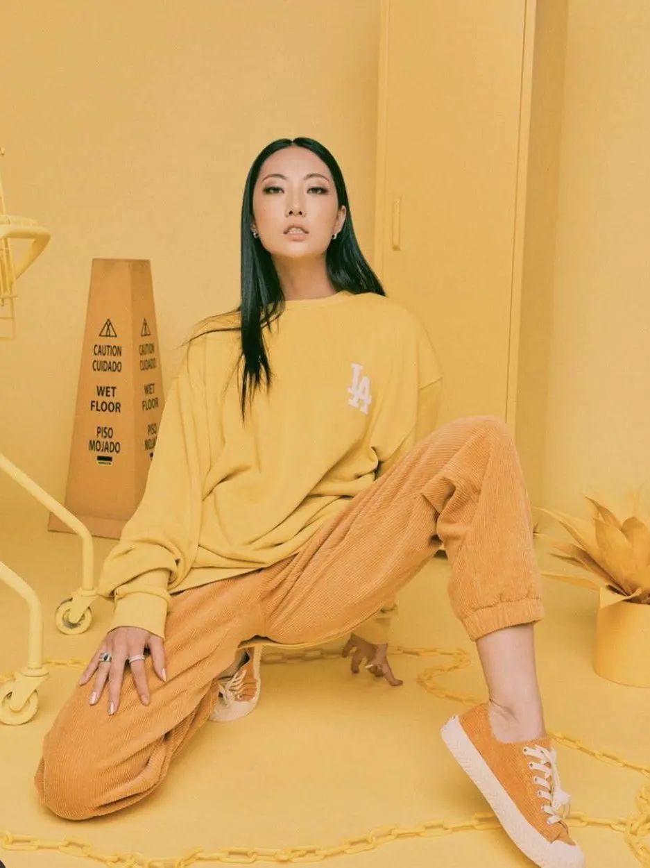 沉闷的秋天,用一抹亮色打破沉寂,李沁选择的这件鹅黄色卫衣,来自CELINE HOMME推出的MONO CHROMS胶囊系列,下身搭配New Balance拼色运动鞋,复古又元气。