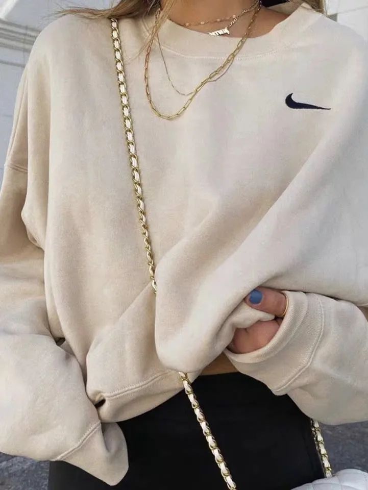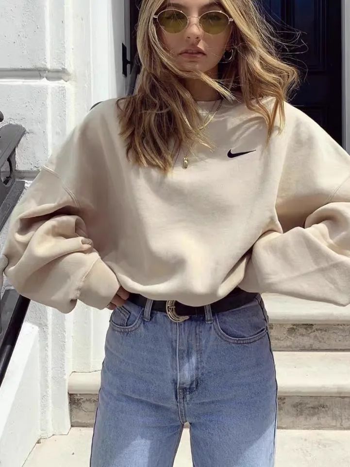 接二连三的炸街组合还不够,老牌运动鼻祖Nike的运动卫衣自然也不可错过!之前基础款的Logo卫衣在IG上刮起了不小热度,随便搭一条长裤,再用项链做点缀就可以很运动时髦。
