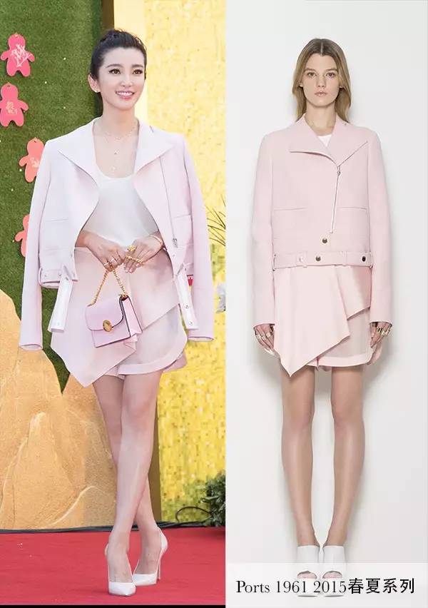 李冰冰当天的粉色夹克短裙来自宝姿Ports 1961 2015春夏系列