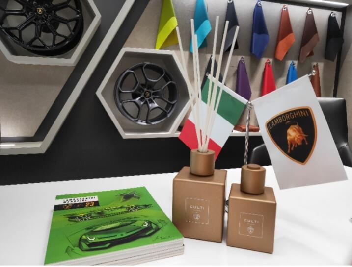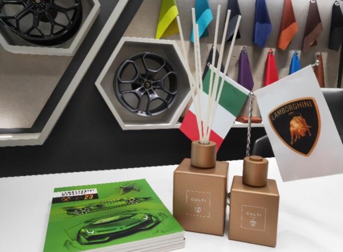 CULTI MILANO更有幸与兰博基尼中国达成全面合作,在其中国大陆的18家精品零售店,陈列Lamborghini联名扩香,以率性洒脱的香气,为兰博基尼用户带来些许意式风情。