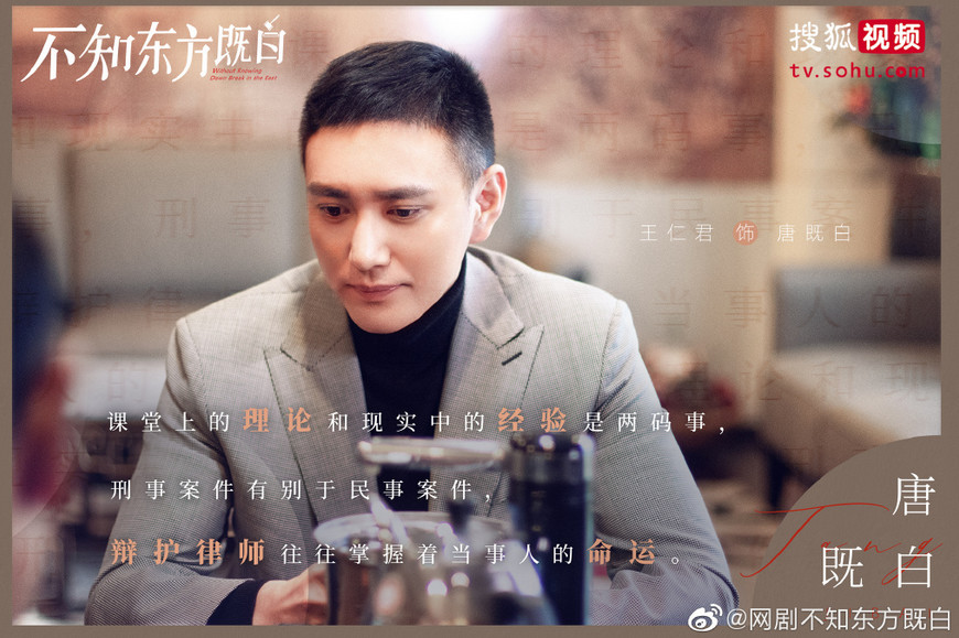剧中男女主人公,唐既白和东方廌,一个是功成名就的法学教授,另一个则是律所的金牌律师,而这个律所的名字就叫做“东方既白”