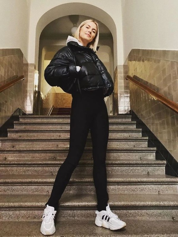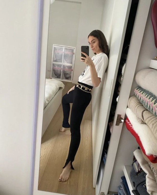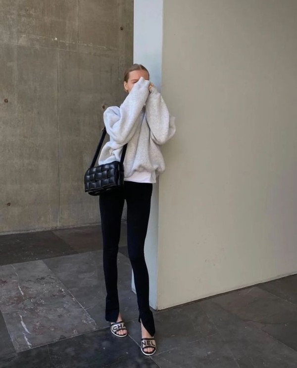 时尚博主Marie Von Behrens更偏爱侧开衩紧身裤,搭配白色打底叠穿圆领oversize套头衫,不多费力气就可以打造这股休闲时髦。