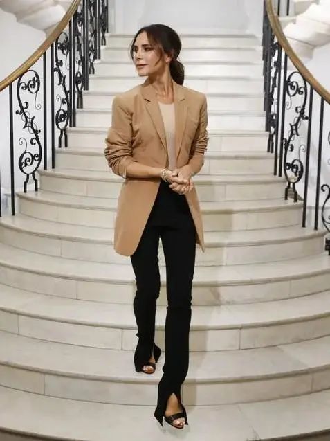 贝嫂在品牌十年纪念日上选择了用西装和开衩裤做搭配,体现果断干练的一面,不仅自己作为开衩裤的忠实爱好者,她还在Victoria Beckham中也推出了具有开衩设计的单品,和姐妹们一起分享优雅女人都该拥有的裤子!