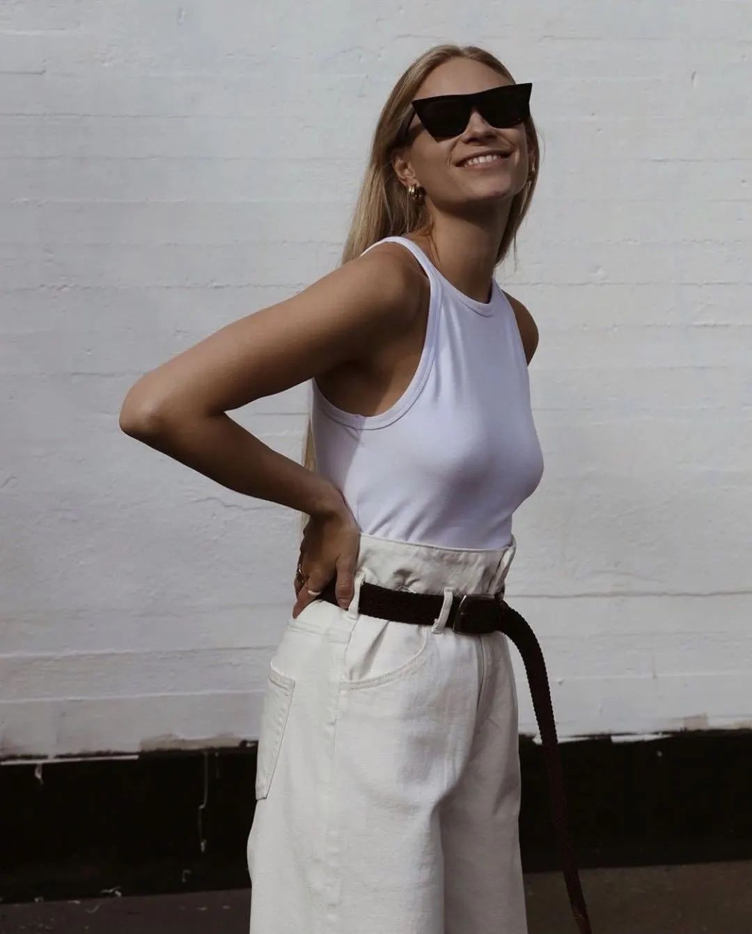 学习时装博主Alyssa,单穿一件撞色的Roxanne打底衫就可以不余遗力地展现造型感,营造出一种色彩分明的时尚搭配,将时髦拿捏得很稳。