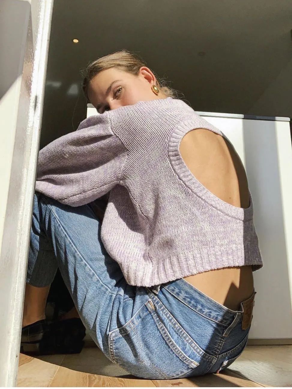 同样玩趣的还有这款半截毛衣,样式真的太过考验穿衣者的搭配功底,就等着不走寻常路的姐妹前来驾驭,凉爽的初秋不妨来一件,衣柜中的吊带们又可以闪亮返场了!