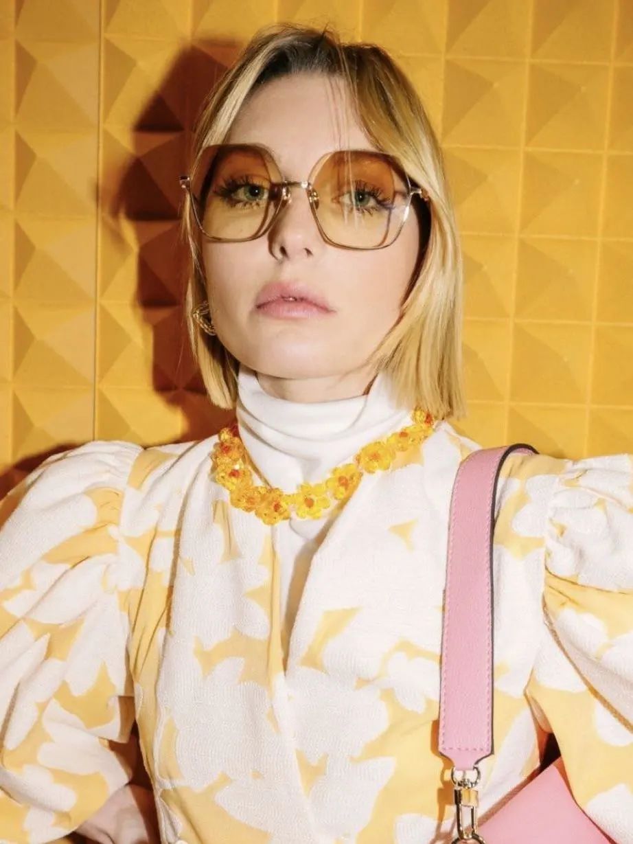 她的拿手戏就是玩配色以及印花,高饱和又难驾驭的颜色,她不但敢穿,还要配合着更亮眼的颜色穿,所以看她的街拍,从来不会觉得乏味。