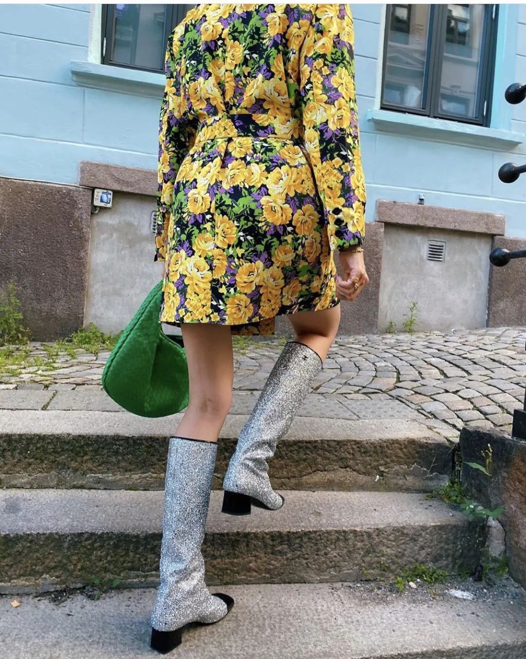或者是学习博主Marianne的穿法,用印花长靴搭配,表现同样可圈可点。