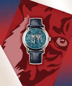 江诗丹顿为钟表收藏家及高级制表爱好者特别呈献 Métiers d’Art 艺术大师系列The Legend of the Chinese Zodiac 中国十二生肖传奇中的最新杰作——虎年腕表。虎,象征着无上的权威和力量,所向披靡。在中国传统文化中它被誉为百兽之王,是驱邪降福的瑞兽。2022 年 2 月 1 日为中国春节,届时“金牛昂首高歌去,瑞虎迎春敛福来”。腕表金质表盘上,以手工雕刻技艺雕成的枝叶装饰图案源自中国传统花卉纹样,半嵌入式的设计将深浅不一的浮雕图案精心组合在一起,营造出富有层次感的纵深效果,所雕刻的植物仿若悬浮于表盘之上,丛林美景跃然腕间。