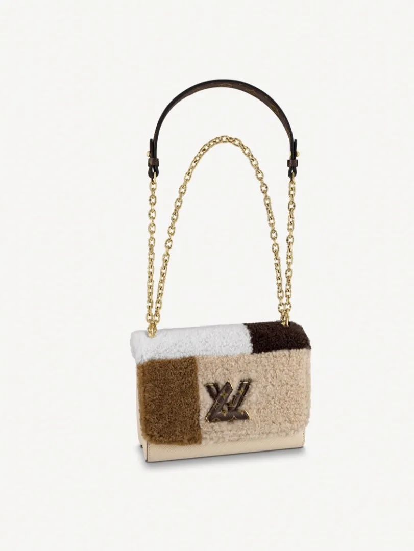 Louis Vuitton最会推陈出新,“犯规”地采用了多色块拼接,这只秋冬最新款的Twist单肩链条包身披丰盈羊毛,细腻嵌花呈现色彩各异的拼贴效果, LV Twist 扭锁采用Monogram 帆布覆盖,诠释了皮具工艺变幻经典设计的更多可能。