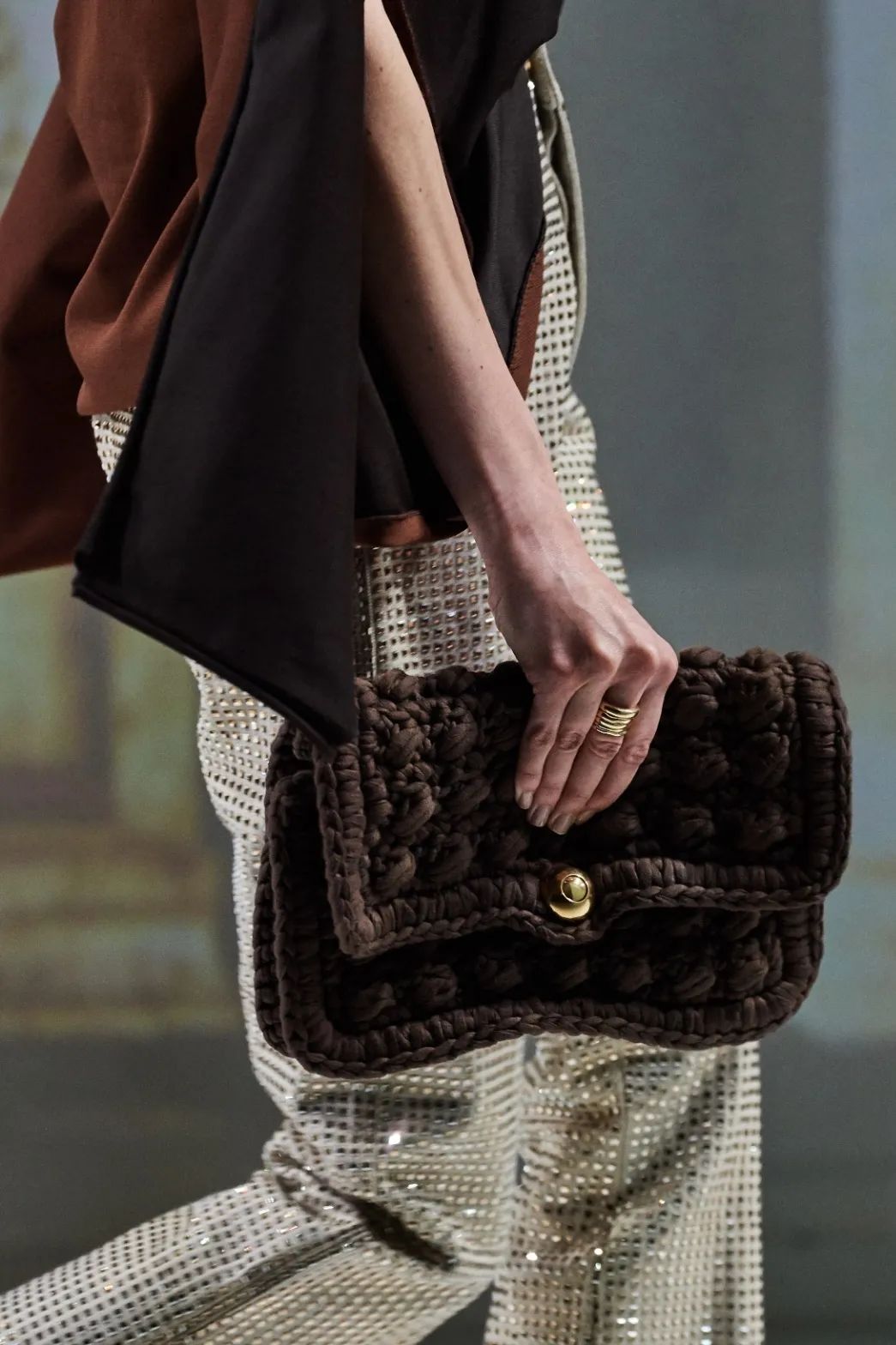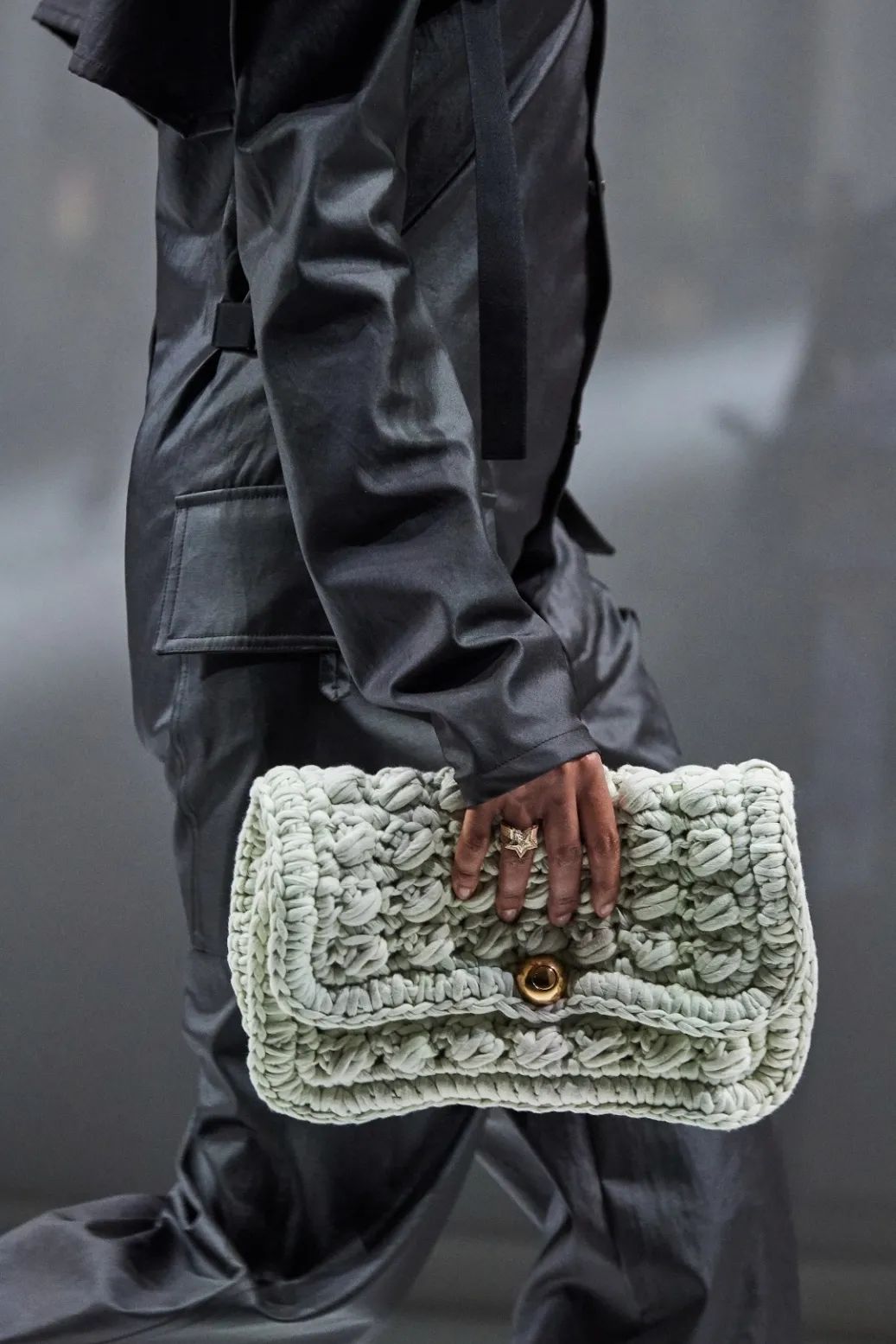 本季秋冬除了毛绒包包还有个重头大戏就是编织钩针包,说到编织不得不提的就是BOTTEGA VENETA大佬了,2020秋冬系列的这款钩针编织包一面世便席卷了整个时尚圈。