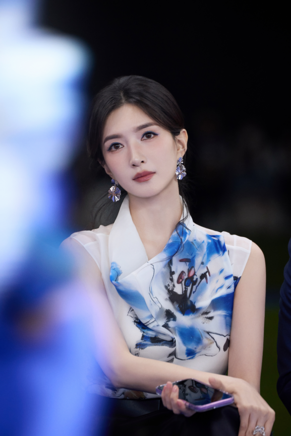 演员、模特、歌手瞿颖前排观秀,身着NAERSI 25°蓝套装完美诠释都市优雅魅力。