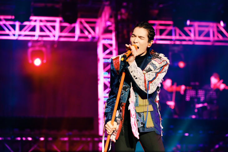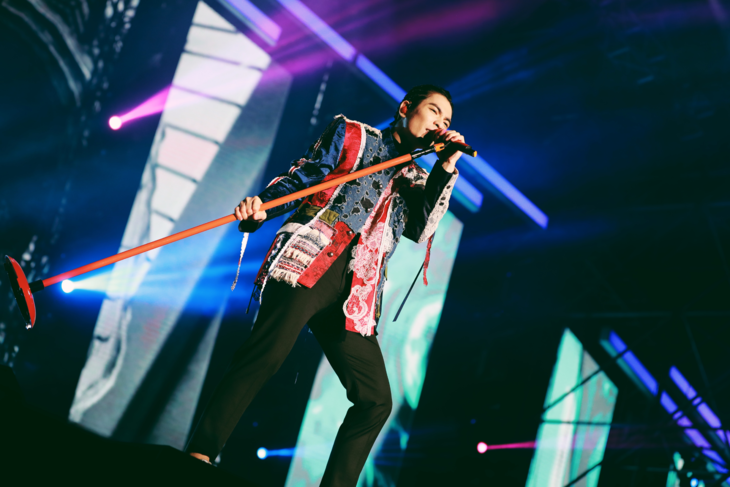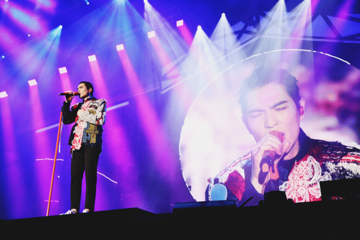 萧敬腾身穿aNGEL CHEN 2019春夏系列拼接西装外套,亮相2019「娱乐先生」世界巡回演唱会佛山站。充满创意的拼接设计将简单的西装延伸出无限的生命力,与萧敬腾多变又富有张力的音乐风格相得益彰。