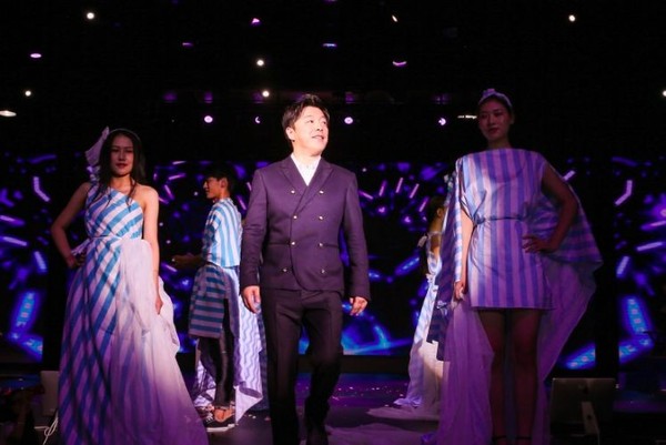于是这一次,黄渤在发布会举办两小时前就开始了紧张的筹备,以蓝白布条为原材料,亲手为六名模特设计服装。