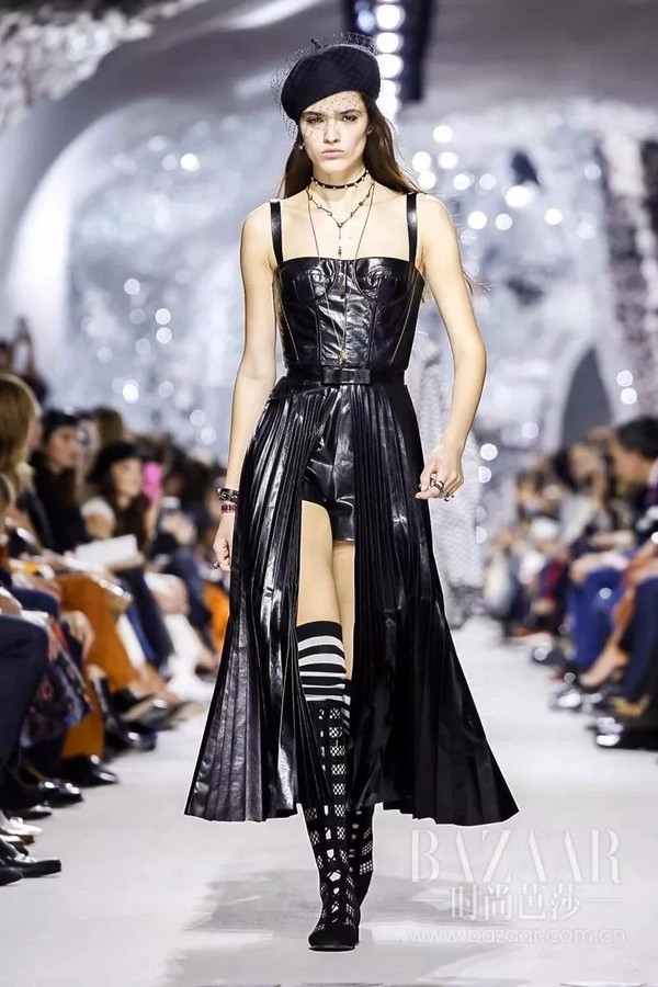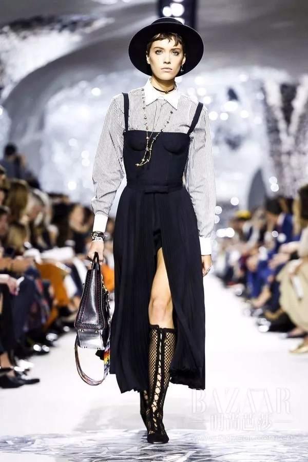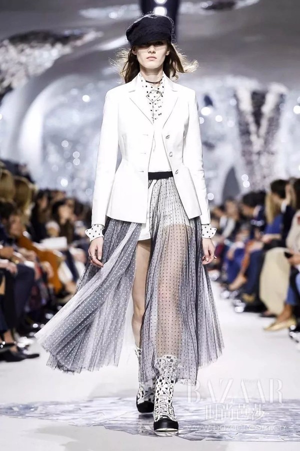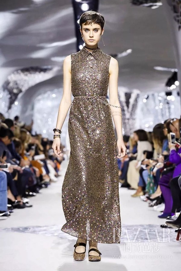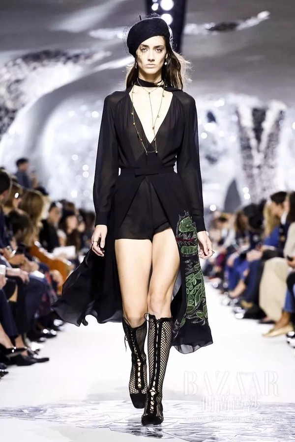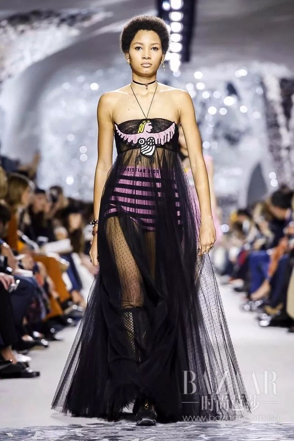 对Dior迪奥女装创意总监玛丽亚·嘉茜娅·蔻丽(Maria Grazia Chiuri)而言本季设计灵感 源于她潜心探索迪奥典藏馆中关于法国艺术家妮基·圣法尔的一系列摄影作品。其中一幅,艺术家坐在骆驼上;而另一幅则是她身着挚友马克·博昂(Marc Bohan)担任迪奥创意总监时所设计的礼服裙。