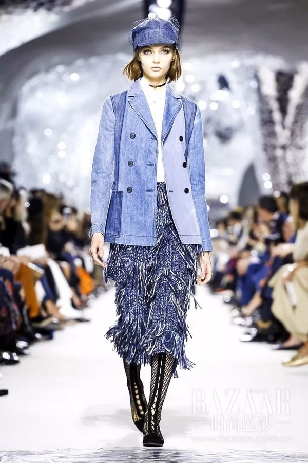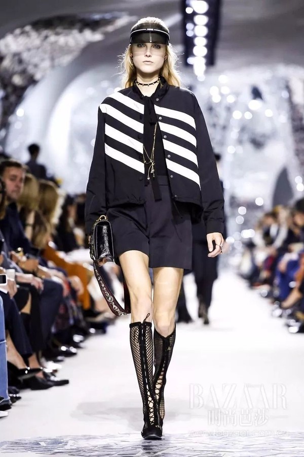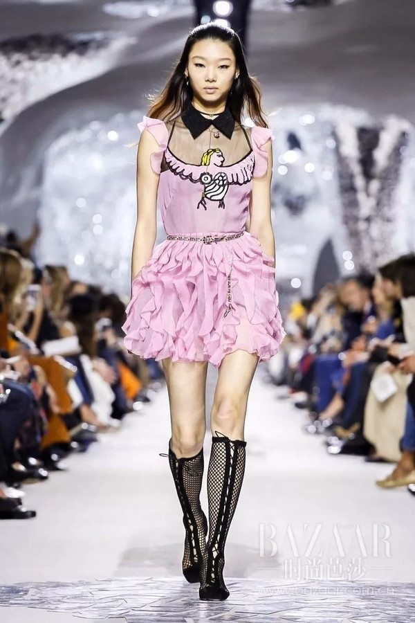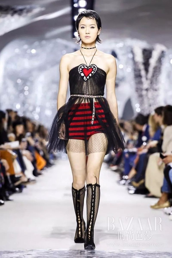 熊乃瑾助阵Dior 2018春夏大秀,蝴蝶结抹胸上衣搭配小西装外套,演绎硬朗与柔美的碰撞。