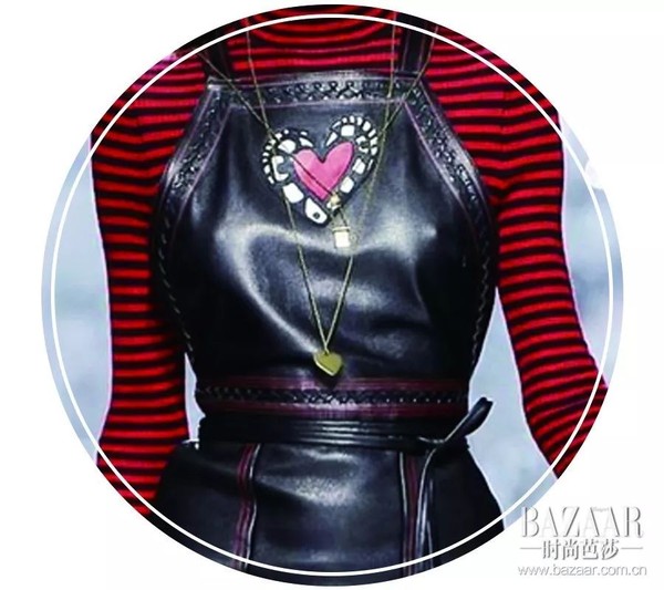 包括妮基·圣法尔的娜娜系列雕塑作品,杰出女性的雕塑、多彩多姿的心、龙、爱情树以及绚丽夸张的奇幻巨作 ——位于托斯卡纳的塔罗花园,幻化为玛丽亚·嘉茜娅最新系列上的印花、刺绣与镜面马赛克图案。她将妮基·圣法尔充满奇思妙想的纷彩色调与蕾丝、丝绸、皮革或塑胶材质之间产生对话。